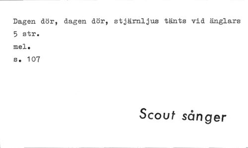//// Dagen dör, dagen dör, stjärnljus tänts vid änglars 5 str. //// mel. //// s. 107 //// Scout sånger ////