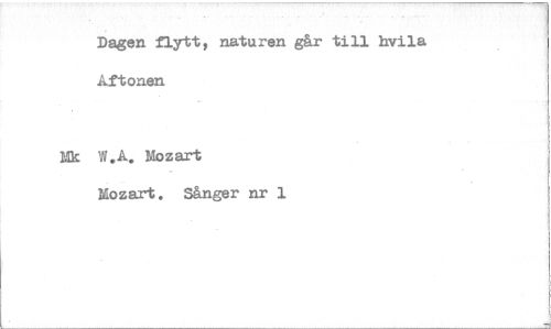//// Dagen flytt, naturen går till hvila Aftonen //// Mk W.A. Mozart //// Mozart. Sånger nr 1 ////