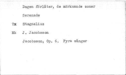 //// Dagen förlåter, de mörknande zoner //// Se renade //// Ti Stagnelius //// Nk J. Jacobsson //// Jacobsson, Op. 6. Fyra sånger ////