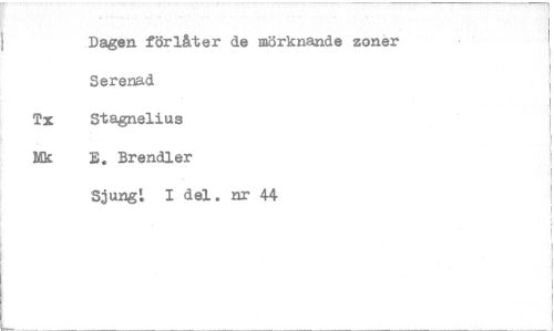 //// Dagen förlåter de mörknande zoner Serenad //// Tx Stagnelius //// Mk B. Brendler //// Sjung'. I del. nr 44 ////