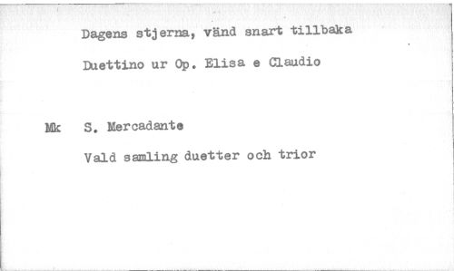 //// Dagens stjerna, vänd snart tillbaka //// Duettino ur Op. Elisa e Claudio //// Ek S. Mercadante //// Vald samling duetter och trior ////