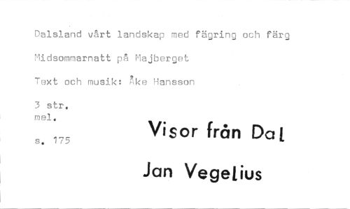 //// Dalsland vårt landskap med fägring och färg Midsommarnatt på Majberget Text och musik: Åke Hansson //// 3 str. mel. Visor från Dat //// s. 175 Jan Vegelius ////