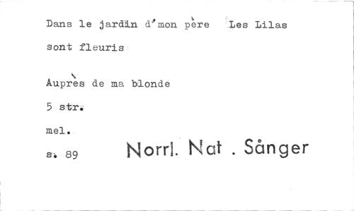//// Dans le jardin emon pere Les Lilas sont fleuris //// Aupres de ma blonde 5 str: //// mel. //// sh 89 Norri. Not . Sånger ////