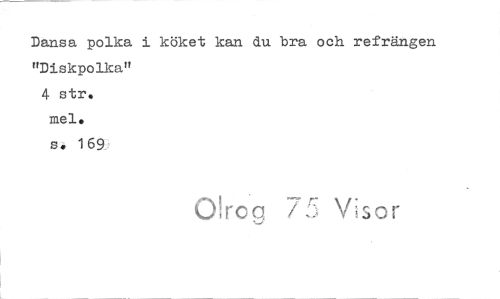 //// Dansa polka i köket kan du bra och refrängen //// "Diskpolka" //// 4 str. //// mel. //// s 169 //// Olrog Visor ////