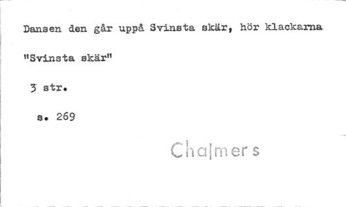 //// Dansen den går uppå Svinsta skär, hör klackarna "Svinsta skär" //// 3 str. s. 269 //// Chalmers ////