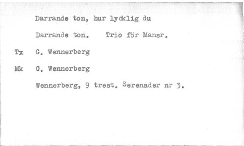 //// Darrande ton, bur lycklig du //// Darrande ton. Trio för Mansr. //// Tx G. Wennerberg //// Ek G. Wennerberg //// Wennerberg, 9 trest. Serenader nr 3. ////