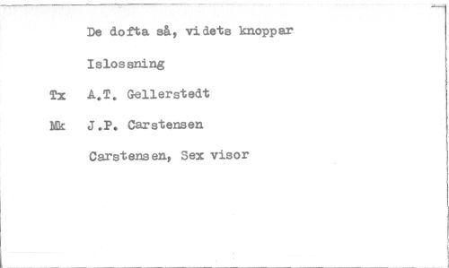 //// De dofta så, videts knoppar //// Islossning //// Tx A.T. Gellerstedt //// Nk J.P. Carstensen //// Carstens en, Sex visor ////