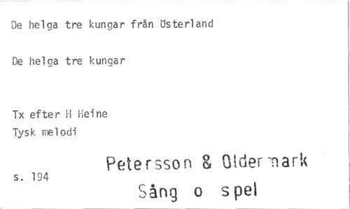 //// De helga tre kungar från österland De helga tre kungar //// Tx efter H Heine Tysk melodi //// s. 194 Petersson g (Eder -nark //// Sång o spel ////