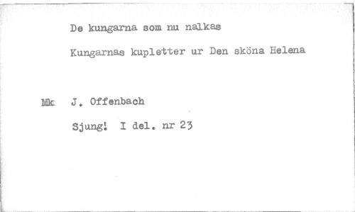 //// De kungarna som nu nalkas //// Kungarnas kupletter ur Den sköna Helena //// Wc J. Offenbach //// Sjung: I del, nr 23 ////