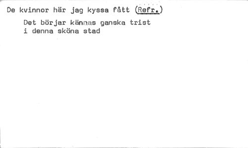 //// De kvinnor här jag kyssa fått (Refr.) //// Det börjar kännas ganska trist i denna sköna stad ////