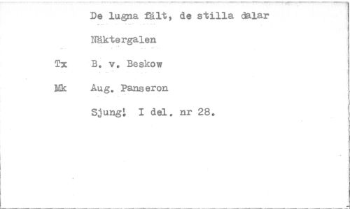 //// De lugna fält, de stilla dalar Näktergalen //// Tx B. v. Beskow //// Nk Aug. Panseron //// Sjung: I del. nr 28. ////
