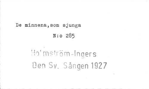 //// De minnena,som sjunga //// N:o 285 //// mstTöm-Ingers Oen Sv.. Sången 1927 ////