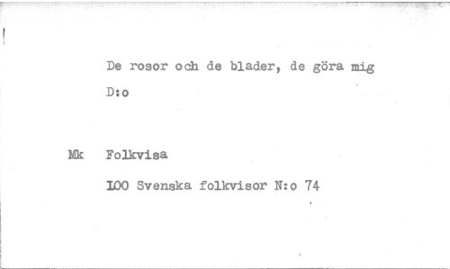 //// De rosor och de bladers de göra mig D:o //// Ek Folkvisa //// 100 Svenska folkvisor N:o 74 ////