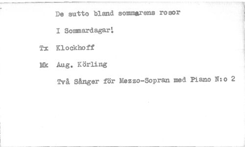 //// De sutto bland sommarens rosor //// I Sommardagar!, //// Tx Klockhoff //// Mk Aug. Körling //// Två Sånger för Mezzo-Sopran med Piano N:o 2 ////