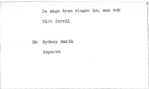 //// De -säga åren vingar ha, men ack Vårt farväl. //// Mk Sydney Smith Separat ////