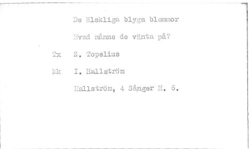 //// De älskliga blyga blommor Hvad nånne de vänta på? Tx Z. Topelius //// Lic 1, Hallström //// Hallström, 4 Sånger H. 6. ////