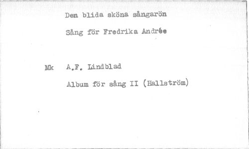 //// Den blida sköna sångarön //// Sång för Fredrika Andrée //// Nk A.F. Lindblad //// Album för sång II (Hallström) ////