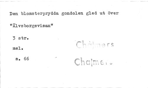 //// Den blomsterprydda gondolen gled ut över "Älvsborgsvisan" //// 3 str. //// mel. Irs //// s. 66 //// Ch //// i i i v.„ i ////