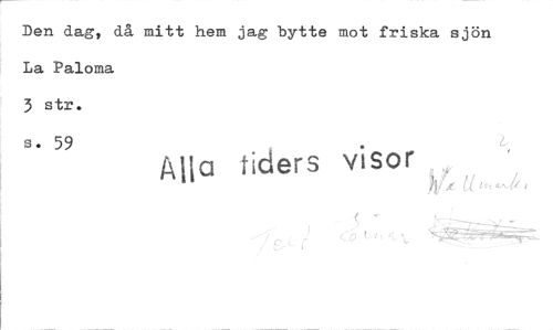 //// Den dag, då mitt hem jag bytte mot friska sjön La Paloma //// 3 str. s. 59 //// Afla tiders visor ////