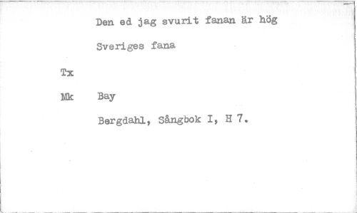 //// Den ed jag svurit fanan är hög Sveriges fana //// Tx //// Nk Bay //// Bergdahl, Sångbok I, H 7. ////
