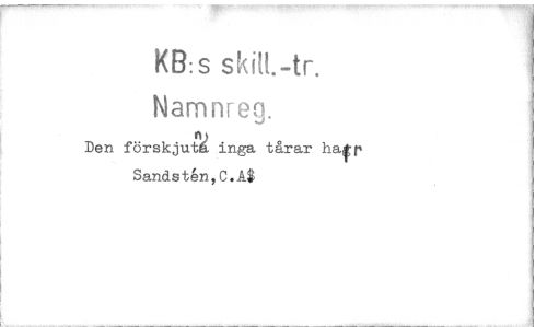 //// KB: s //// Namnreg. //// Den förskjut inga tårar har Sandsten,C.A$ ////
