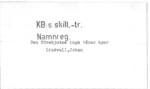 //// KB:s //// Namnreg. //// Den förskjutne inga tårar äger Lindvall,Johan ////