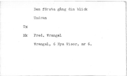 //// Den första gång din blick //// Undran //// Ta //// Nk Fred, Wrangel //// Wrangel, 6 Nya Visor, nr 6. ////
