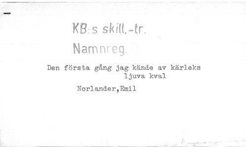 //// 103: s skilt.-fr. //// Namweg. //// Den första gång jag kände av kärleks //// ljuva kval //// Norlander,Emil ////