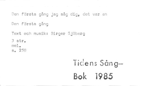 //// Den första gång jag såg dig, det var en Den första gång //// Text och musik: Birger Sjöberg //// 3 str. mel. //// s. 258 //// Tidens Sång— //// Bok 1985 ////