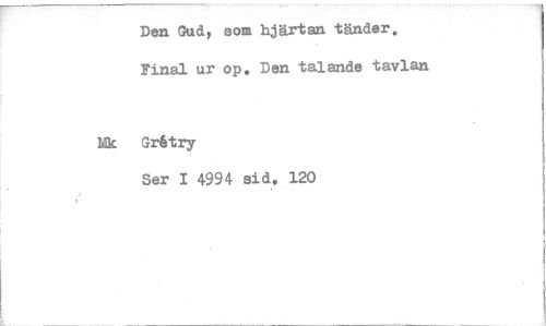 //// Den Gud, som hjärtan tänder, Final ur °p. Den talande tavlan //// Gr6try //// Ser I 499 4 sid. 120 ////