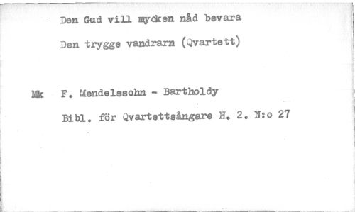 //// Den Gud vill mydken nåd bevara //// Den trygge vandrarn (Qvartett) //// 1& F. Mendelssohn - Bartholdy //// Bibi. för Qvartettsångare H. 2. N:o 27 ////