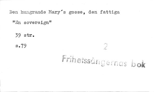 //// Den hungrande Nary's gosse, den fattiga //// "En sovereign" //// 39 str. s.79 //// t-1' bo ////