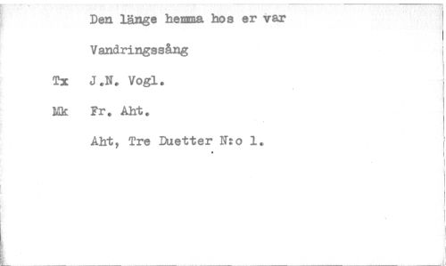 //// Den länge hemma hos er var //// Vandringssång //// Tx J.N. Vogl. //// Mk Fr. Aht. //// Aht, Tre Duetter N:o 1. ////
