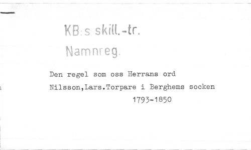 //// KB:s ski(1-fr. //// NamnreT //// Den regel som oss Herrans ord //// Nilsson,Lars.Torpare i Berghems socken //// 1793-1850 ////