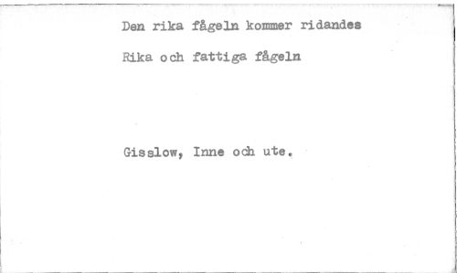//// Den rika fågeln kommer ridandes Rika och fattiga fågeln //// Gisslow, Inne och ute. ////