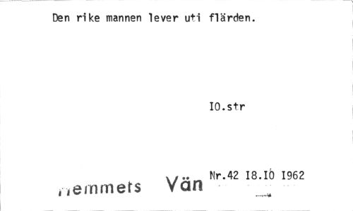 //// Den rike mannen lever uti flärden. //// IO.str //// Nr.42 18.10 1962 //// i gems-nets Van ////