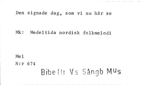 //// Den signade dag, som vi nu här se //// Mk: Medeltida nordisk folkmelodi //// Mel //// N:r 674 //// Bibe Vs Sångb Mus ////