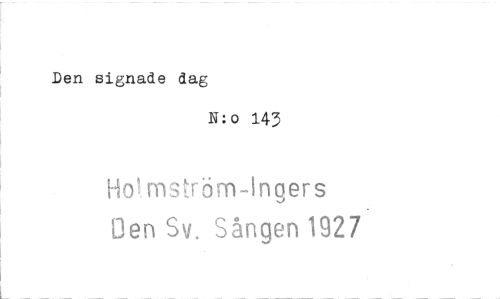 //// Den signade dag //// N:o 143 //// Ho!rnström-Ingers //// Den Sv. Sången 1927 ////