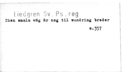 //// Hedgren Sv . Ps . reg //// Th•n smala wäg är nog til wandring breder //// 6.357 ////