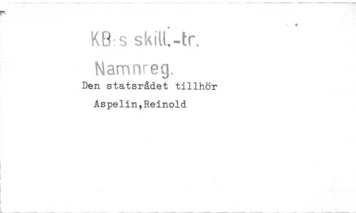 //// KB: s skilt.-tr. //// Namnreg. //// Den statsrådet tillhör Aspelin,Reinold ////