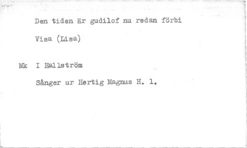 //// Den tiden är gudilof nu redan förbi Visa (Lisa //// Mk I Hallström //// Sånger ur Hertig Magnus H. 1. ////