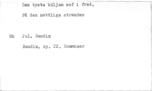 //// Den tysta böljan sof i fred. På den nattliga stranden //// Mk Jul, Bendix //// Bendix, op. 22. Romanser ////