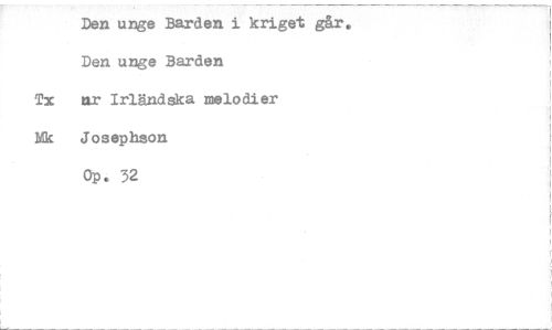 //// Den unge Barden i kriget går. //// Den unge Barden //// Tx nr Irländska melodier //// Mk Josephson //// Op. 32 ////