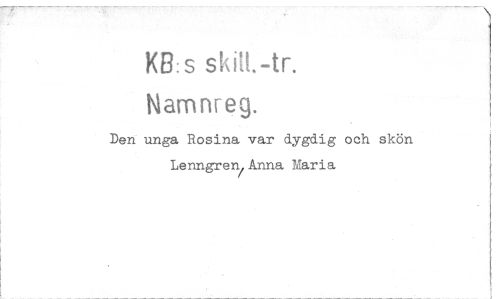 //// KB: s skilL- //// Namnreg. //// Den unga Rosina var dygdig och skön Lenngren(Anna Maria ////