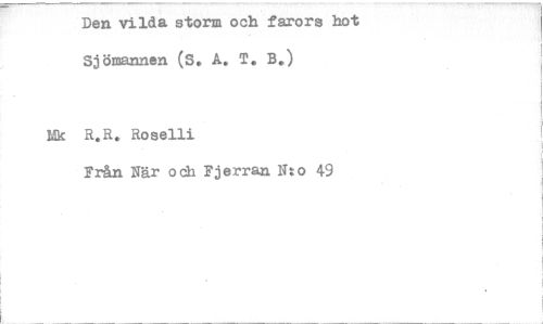 //// Den vilda storm och farors hot Sjömannen (S, A. T. B.) //// Nk R.R. Roselli //// Från När och Fjerran Nto 49 ////