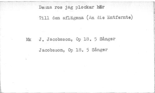 //// Denna ros jag plockar här //// Till den aflägsna (An die Entfernte) //// Nk J. Jacobsson, Op 18. 5 Sånger Jacobsson, Op 18. 5 Sång er ////