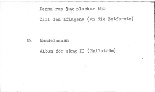 //// Denna ros jag plockar här //// Till dån aflägsna (An die Entfernte) //// Ek Mendelssohn //// Album för sång II (Fallström) ////