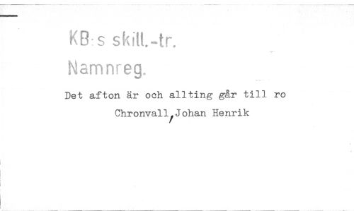 //// KBs skift.-tr //// Namnreg. //// Det afton är och allting går till ro Chronvall Johan Henrik ////