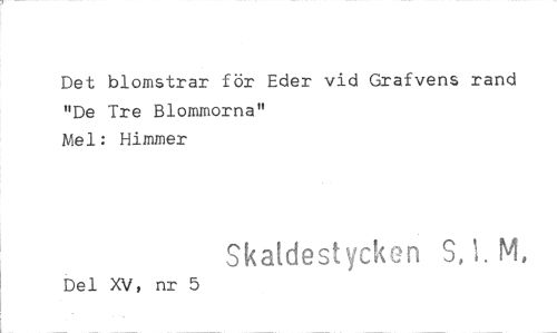 //// Det blomstrar för Eder vid Grafvens rand "De Tre Blommorna" //// Mel: Himmer //// Skaidest yck S, 1. M, //// Del XV, nr 5 ////