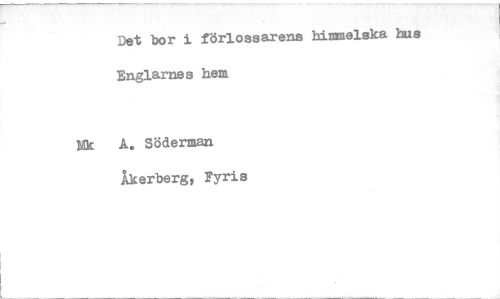 //// Det bor i förlossarens himmelska hus Englarnes hem //// Nk A. Söderman Åkerberg, Fyris ////